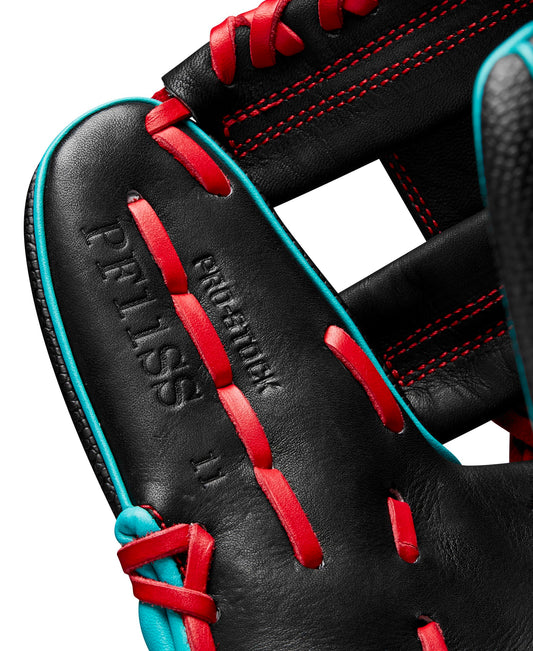 Wilson 2024 A2000 PF11SS 11” Infield Baseball Glove - Right Hand Throw, Black/Teal/Red